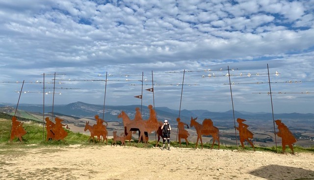 Evoco el sentimiento de haber cruzado bajo la Porte d’Espagne como la consagración de un comienzo. Había unas cuantas sombras caminando al frente y detrás de mí, pero yo me percibía como el centro. Casi todos llevábamos una lámpara frontal en nuestras cabezas, luces andantes, más el sonido de los pies y el silencio de un pueblo sin despertar. Pronto comprobé que yo era un caminante más veloz que la mayoría. Todos tenemos un ritmo natural al caminar, el mío perfeccionado para las calles de Manhattan, donde no hay más remedio que caminar presto en una ciudad que anda a las carreras, y que me venía justo para lo que tenía delante. Y fue brutal. Había que ascender de unos 200 metros de altura donde está Saint Jean hasta más de 1400 por unos 20 km de sendero. Después bajar 400 metros en unos 5 km hasta Roncesvalles. Llegué uno de los primeros. Me temblaban las piernas y me crecía una sonrisa de oreja a oreja. Es difícil explicar lo que se siente, eso de poner un pie delante del otro cuando hasta respirar es un esfuerzo, porque si uno para está derrotado y eso es impensable. Claro que se descansa en el camino, hay un albergue antes de la mitad de la jornada donde desayuné por segunda vez, y uno se aparta para orinar, y se toma agua andando y se habla con el que uno tenga cerca, y se dan ánimos uno a los otros. Roncesvalles no se puede considerar ni siquiera una aldea, pero el albergue es enorme. Ahí empecé la rutina de lo que sería el Camino. Levantarse temprano, comer, empezar a caminar, comer de nuevo en algún lugar intermedio, caminar otra vez hasta llegar al nuevo punto de destino. Antes de viajar a España me había programado cuánto iba a caminar cada día, cuánto debía demorarme, dónde me quedaría a dormir. En la práctica me demoraba menos de lo planeado y los lugares a dormir lo decidía cuando estaba en frente de ellos. El siguiente pueblo donde dormir fue Zubiri, y después, Pamplona. En la jornada que caminaba hacia Pamplona conocí a un argentino, caminé casi todo el día con él, era fácil de conversación y aunque era un poco más lento que yo, me adapté a su paso. No lo volví a ver hasta después de terminar el Camino que nos encontramos en Madrid. Nos mantuvimos en contacto mandándonos mensajes. Él andaba un poco más lento que yo, pero caminaba como un desquiciado durante todo el día, tenía resistencia de caballo. Mientras yo me limitaba a cinco o seis horas de marcha, el hacía doce o catorce. Me contó que el último día caminó 50 km. Cada persona tiene un Camino diferente, es algo muy personal, no hay Camino erróneo, todos son válidos. Al siguiente día no caminé. Nunca había estada en Pamplona y desde que era un adolescente Hemingway me había hecho soñar que un día yo también correría con los toros. Nunca lo hice. Deambulé por calles sin saber donde terminaría, me gustaron los parques y la gente. Me detuve a comer pintxos no sé cuántas veces. Los últimos tres días se me había destapado un hambre incontrolable. El viernes 13 volví a caminar. Ese día pasé por el Alto del Perdón, a unos 800 metros de altura. Hay una leyenda que en ese lugar a un peregrino que moría de sed el diablo le ofreció un manantial por su alma, el peregrino desdeñó la oferta y Santiago en persona vino a traerle agua. Yo paré por el paisaje, y cuando iba a seguir una coreana con la que ya había conversado y que llegó seguida de mí, me amonestó que sería un pecado continuar sin tirarme una foto, así que nos tiramos fotos mutuamente. Había notado antes que ella tiraba fotos a diestra y siniestra, sin lugar a dudas tenía pánico a pecar.