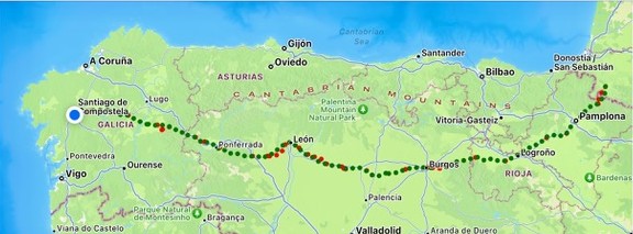 No soy bueno en encontrar direcciones, cuando pienso que debo dirigirme en un sentido, hay grandes probabilidades de que sea el camino errado. Cuando salí de Pamplona me costó un rato encontrar el Camino. Hay gente que sabe intuitivamente hacia dónde ir, mi intuición en ese aspecto no es que sea desatinada, es que es nula. El Camino está marcado por flechas amarillas, conchas en fondo azul, o conchas en el pavimento o señales escritas. Jamás las veía. Creo que la última semana me volví un poco más sagaz, pero eso de que no es posible perderse, no se aplica a ineptos como yo. Tampoco es que me perdí tanto, solo tres o cuatro veces en casi 800 km. Mirando hacia atrás se me mezclan los pueblos unos con otros, los días son una repetición. Al menos casi no llovió en las dos primeras semanas, o eso creo. Recuerdo la Catedral de Santo Domingo, no estaba preparado para algo tan bello. La de Burgos también me impactó, pero para esa ya tenía referencias. De todas formas creo que la colección de catedrales e iglesias en el camino deberían ser más apreciadas, recibir más gente con la boca abierta como me pasó a mí. Muchos pueblos son también espléndidos, sobre todo los de montaña. Pero en el caso de Castilla, la mayoría de los pueblos son tristes. Prácticamente abandonados donde habitan tres o cuatro ancianos y casas que fueron cálidas y ahora están desvencijadas. Era triste pasar por ellos, daban ganas de llorar.
