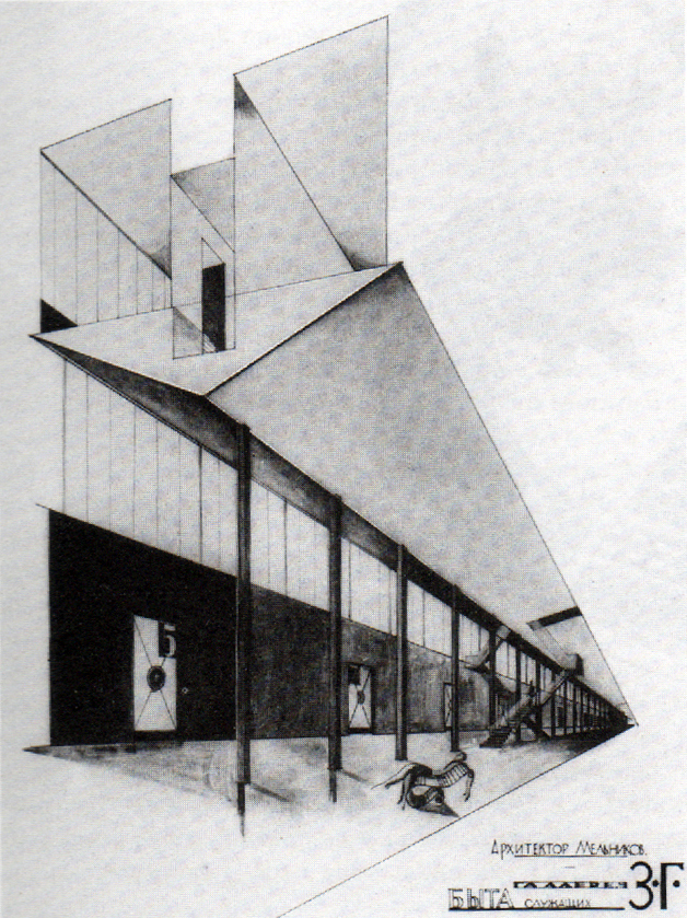 La propuesta de Mélnikov fue posiblemente su proyecto más radical: la idea principal era asegurar la máxima calidad de sueño, planteando la ciudad como la máquina para dormir. Su elemento base eran las unidades residenciales de dormitorios colectivos, cada una para 4000 personas, organizadas de tal manera que permitían un sueño profundo e ininterrumpido y cuyo diseño tendría que unir los conocimientos de médicos, músicos, arquitectos y otros técnicos. El problema de la clase obrera era el descanso. Las 8 horas de trabajo se alargaban sistemáticamente para cumplir o superar las cuotas de productividad establecidas por el plan. Había además el trabajo voluntario para la comunidad, horas de educación continua, reuniones interminables de las células políticas y sesiones de autocrítica que hacían desaparecer a las 8 horas libres además de alguna hora del sueño que también se reducía por la pérdida de tiempo en desplazamientos o abastecimiento. En la memoria del proyecto Mélnikov escribía: “Y ahora cuando oigo que nuestra salud necesita de alimentación, yo digo que no, que lo que necesita es sueño. Todos dicen que para descansar se necesita de aire, y yo digo nuevamente que no: sin sueño el aire es incapaz de restablecer nuestras fuerzas…”